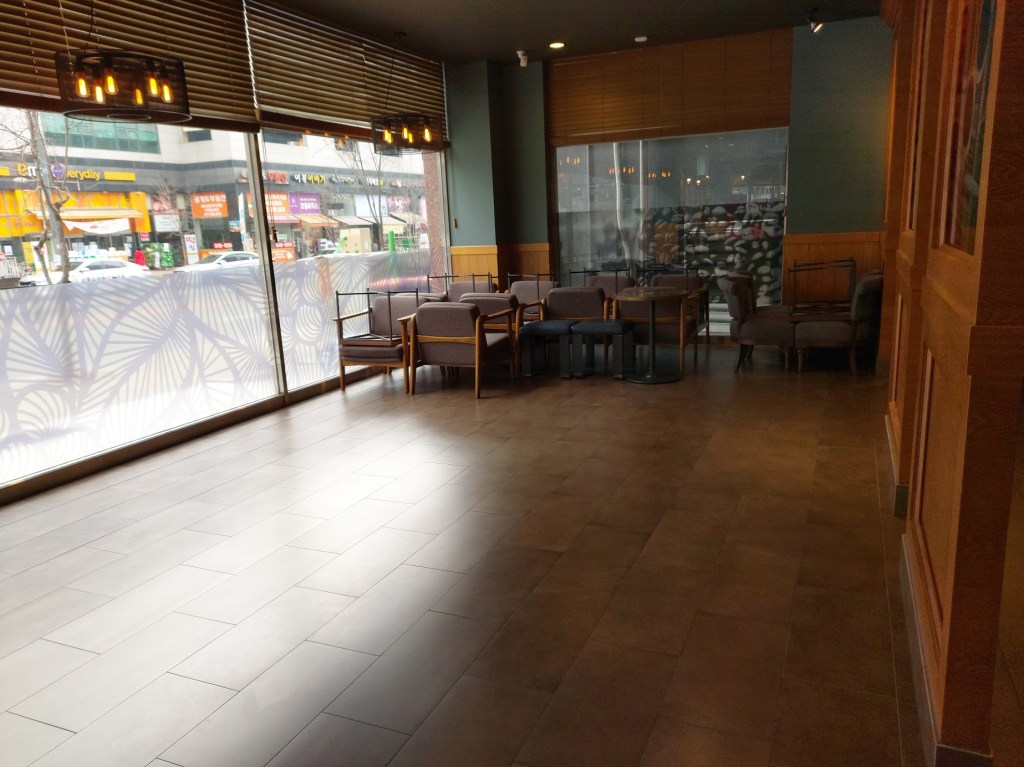 Under a 2.5, all chain cafes must do take-out only, and restaurants and bars must close after 9pm. I didn’t wander around Uijeongbu past 9pm during the 2.5, but I imagine downtown was completely empty. For the most part, people stayed home during the semi-lockdown and ordered take-away or only ventured out to buy groceries. (I was the former. I prefer calling it “supporting the local economy” not “sheer laziness.”)