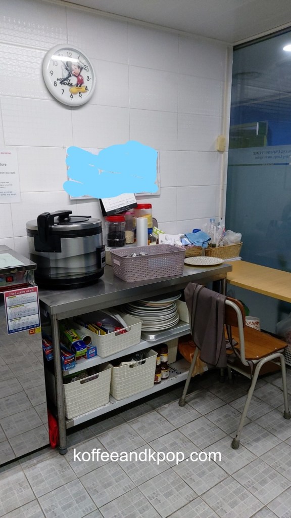 Below is a view of our kitchen at school. In the first picture is the lunch set-up for teachers. If the kids ask for more food and we run out in the class, we send them to the kitchen to see if there’s any leftover. Usually it’s sausage, meat or seaweed. Once a student came into the teachers’ room to ask if anyone had any leftover sausage because the kitchen had run out!