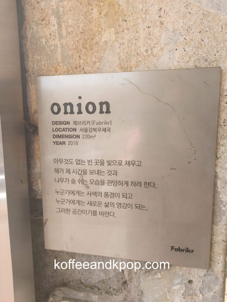 Café Onion, Mia, was actually the first Café Onion I visited in Korea. Located in the Mia district of Seoul, it stands unassumingly next to a post office, under an awning. Unless you know what you’re looking for or spot the signage, you could easily walk past this gem.