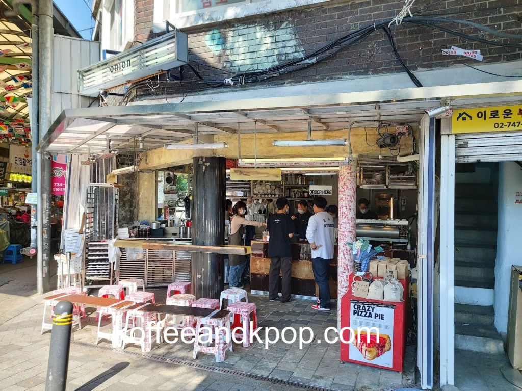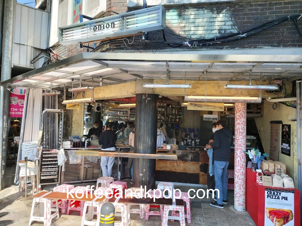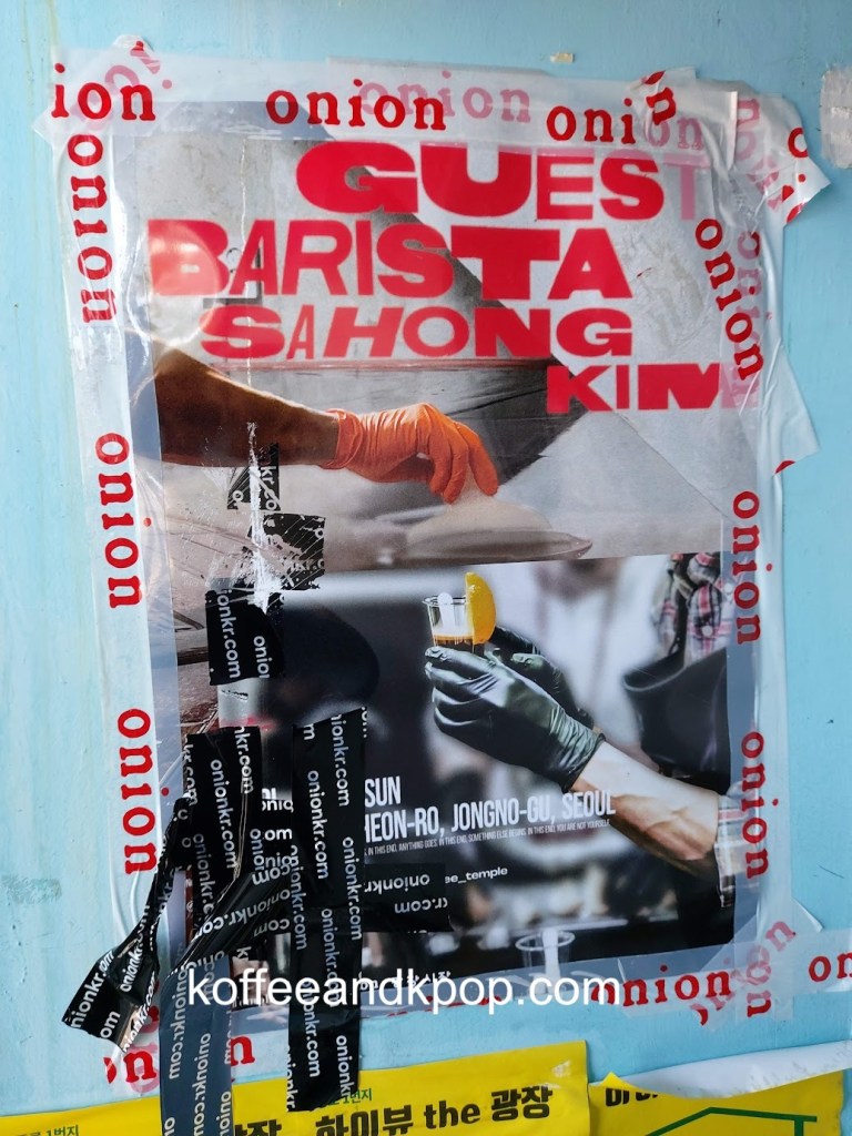 I was headed to Gwangjang Market to grab some lunch before a Blue Bottle tasting and noticed the Onion signage on a pillar just outside the market.