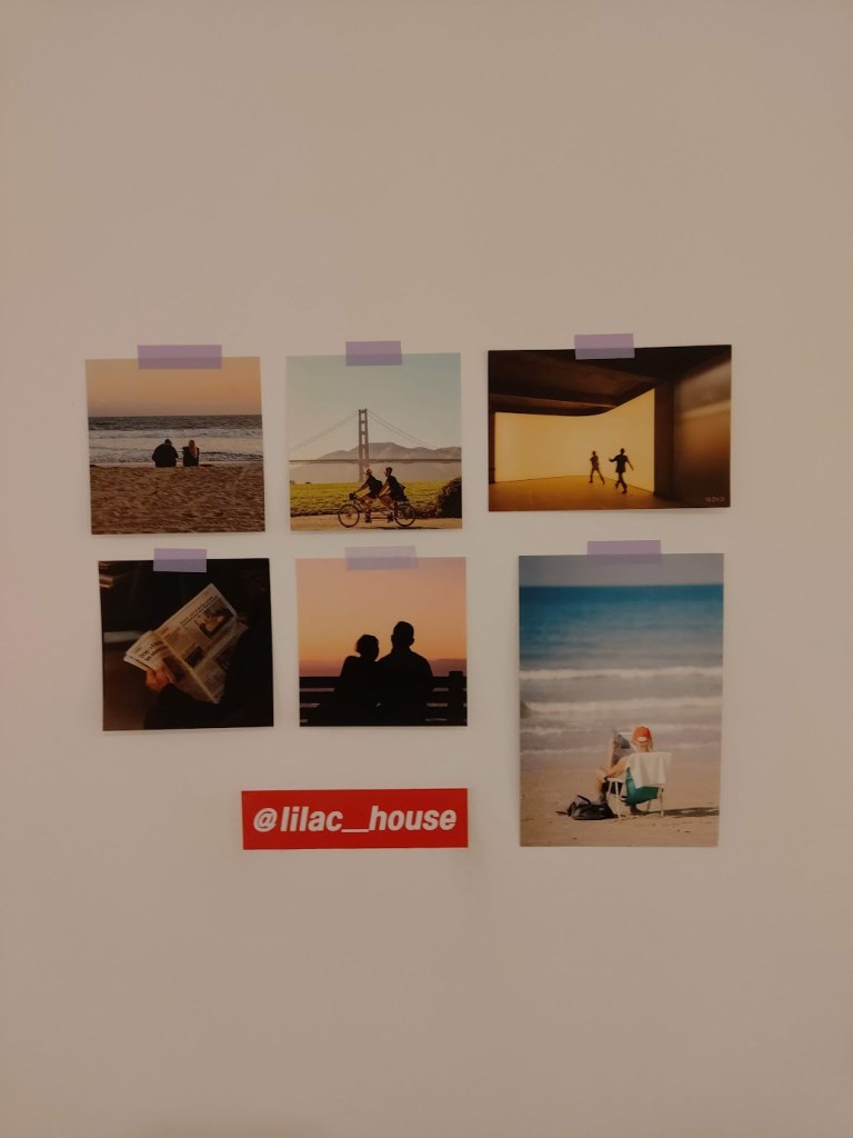 the exterior of Lilac House, featuring lettering on white tile, and a cute light-up box featuring a large purple lilac tree