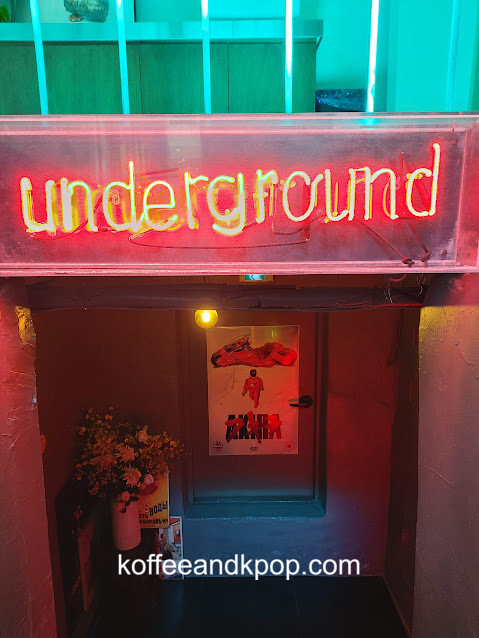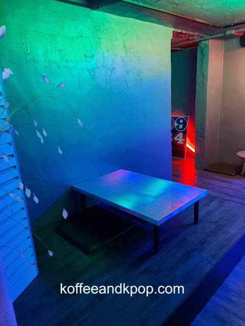 Downstairs, in the “underground” is where couples can go to canoodle. It’s very dark and you’re meant to sit on the floor so there’s two pairs of slippers for you, as well as a shelf for your outside shoes. There’s a projector playing a movie.