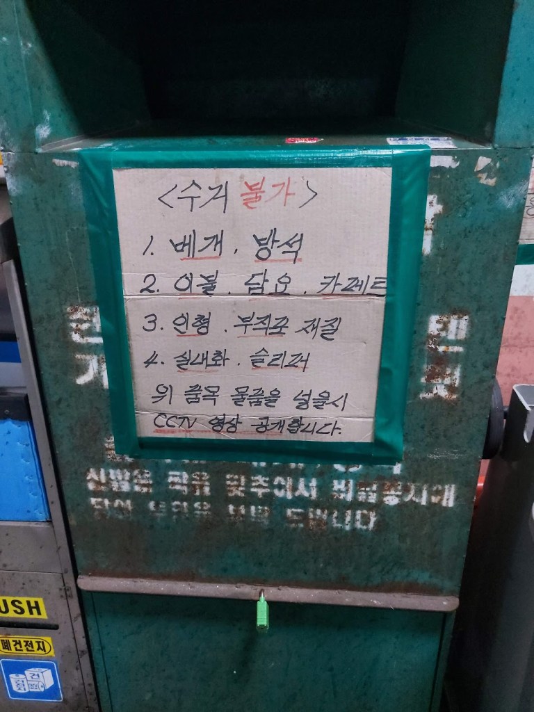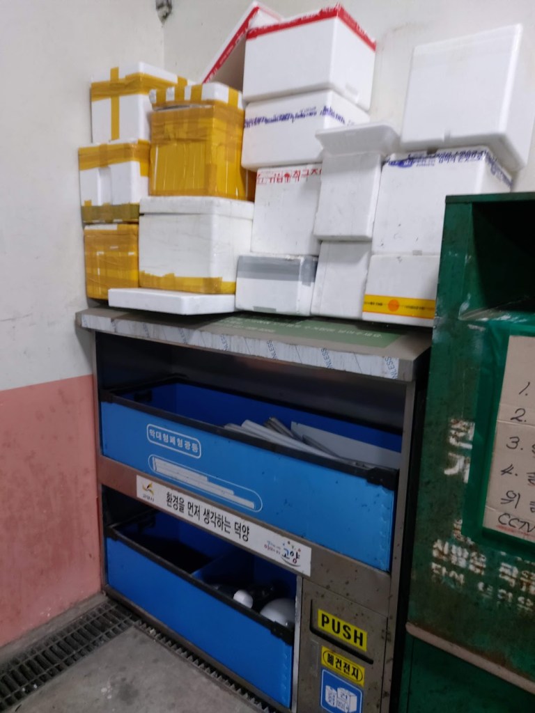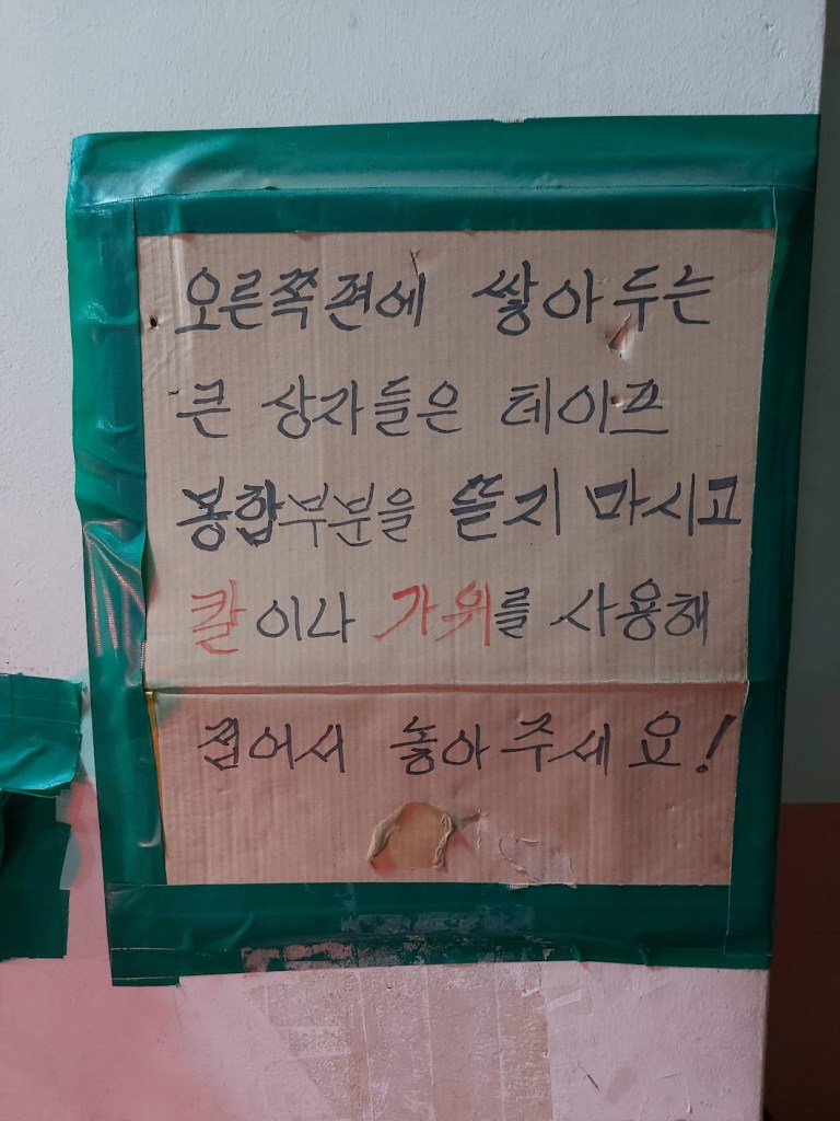 As far as recycling goes… prepare to get it wrong. You will inevitably put something where it isn’t supposed to be and heaven forbid you do so in front of a security guard or local ahjumma (middle-aged woman; it comes with its own stereotype).
