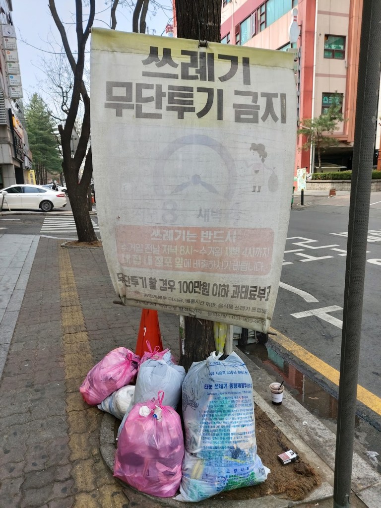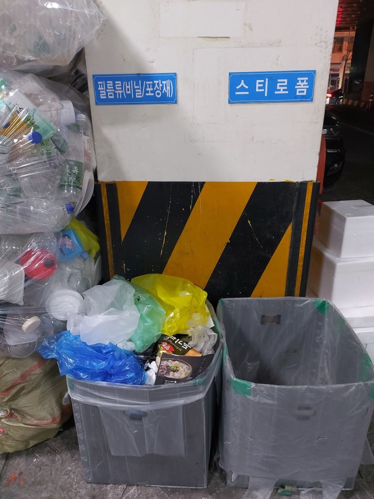 An article from March 2021 states that Seoul has begun adding back the trash cans they initially took away. (Read it here.) There is still a dearth of public trash cans in Seoul, however, and I usually end up walking into a convenience store to throw away my trash if I’m walking around Seoul, much to the annoyance of the worker there.