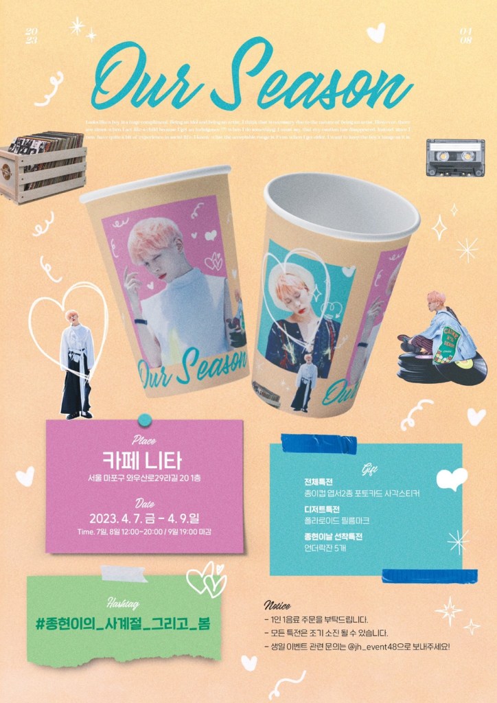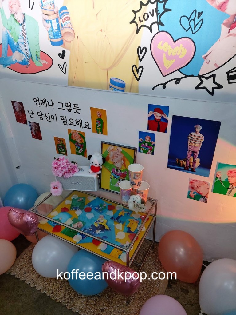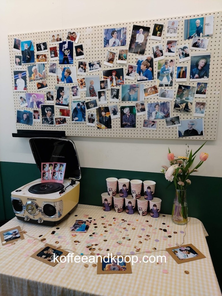 생일카페, or birthday cafe is a common event in South Korea where people rent out cafes for Kpop idol’s birthdays and they give away free paper cups and sleeves, stickers, photocards, and other items branded with the idol’s photos. You can read about how one is managed by clicking here.