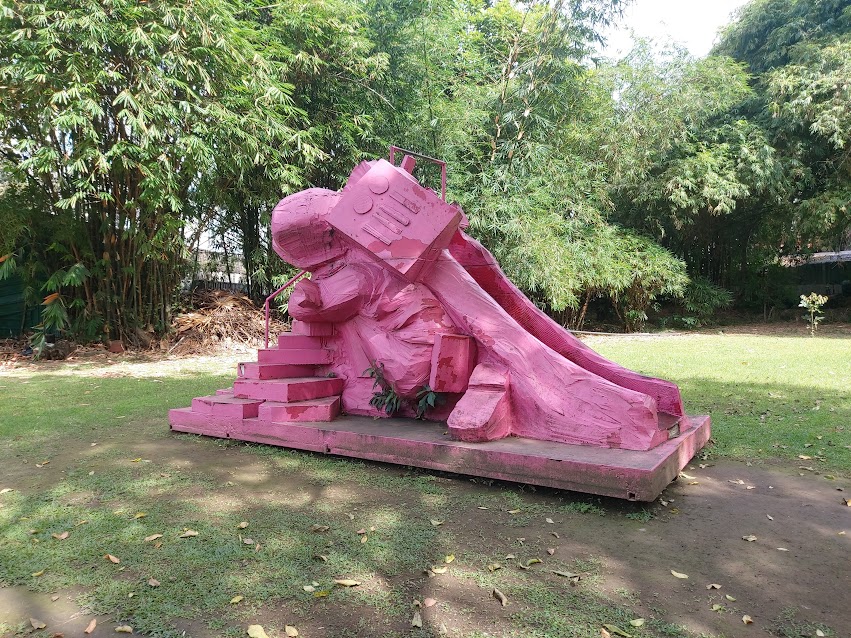 blue motorbike against a wall overgrown with the roots of a treewelcome signmodern trashcans in green, red, and blue, against a crumbling building in the backgroundpeek of a ladder inside one of the ruins; I’m assuming they were doing some kind of work on the ruinsship’s anchor monumentthis person was serenading all of us that dayruins of the American barracksruins of the American barracksruins of the American barracksruins of the American barracksruins of the American barracksthe Gate of Fort Santiago in the distancePlaza de Armas“The Gate of Fort Santiago was built together with the military barracks in 1714. It was destroyed in the Battle of Manila in 1945. The Intramuros Administration restored the Gate in July 1982. The Hon. Carlos P. Romulo, Minister of Foreign Affairs, donated the funds for the relief carving. Wilfredo Layug of Betis Pampanga carved the wood relief. Zacarias Salonga did the stone carving.”Gate of Fort SantiagoGate of Fort Santiagonot sure what this was, but it was very pink…a social distancing sign“Originally built with brick as a military barracks, 1593. Site of the prison cell of national hero-martyr Jose Rizal, charged by colonial authorities with rebellion, sedition, and formation of illegal societies, 3 November to 29 December, 1896. Destroyed during the Second World War. Partially reconstructed and dedicated as a shrine to Rizal, 1952-1953.”shrine of Jose Rizalstatue of a soldier lighting a cigarette (?)The White Cross, “The 600 decomposing corpses, victims of atrocities during the Second World War, discovered at the dungeons by liberation forces of the United States were buried en masse under this white marble cross.”“In Memory of the Victims at Fort Santiago. On this site lie the mortal remains of approximately 600 Filipinos. Their bodies were fond inside a nearby dungeon where victims of the atrocities perpetrated by the Japanese Imperial Fores were imprisoned during the last days of February 1945. The memory of all these unknown victims of Japanese atrocities will live forever in the hearts and mind of the Filipino people.”The White Crosssign in front of the dungeons, “You are entering hallowed grounds please conduct yourselves with dignity and respect at all times”sign at the entrance to the dungeons, asking you to “wait for security to give permission” to entermannequins of prisoners in the dungeonsLEGO display of Iglesia de San Nicolas De TolentinoLEGO display of Iglesia de San FranciscoLEGO display of Iglesia de Santo DomingoLEGO display of the Manila Cathedral