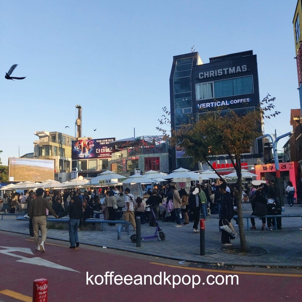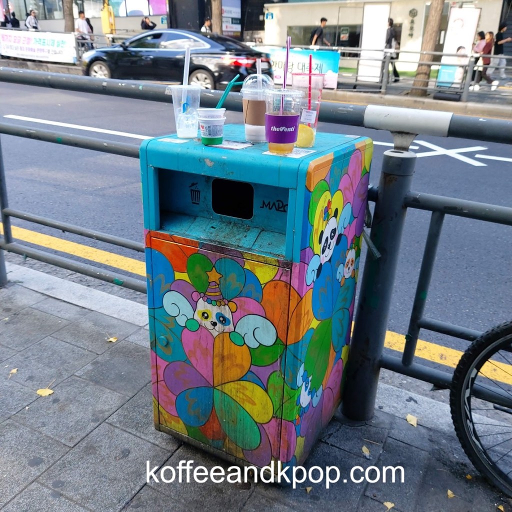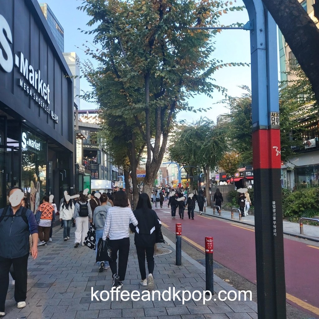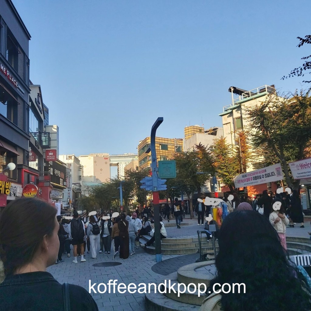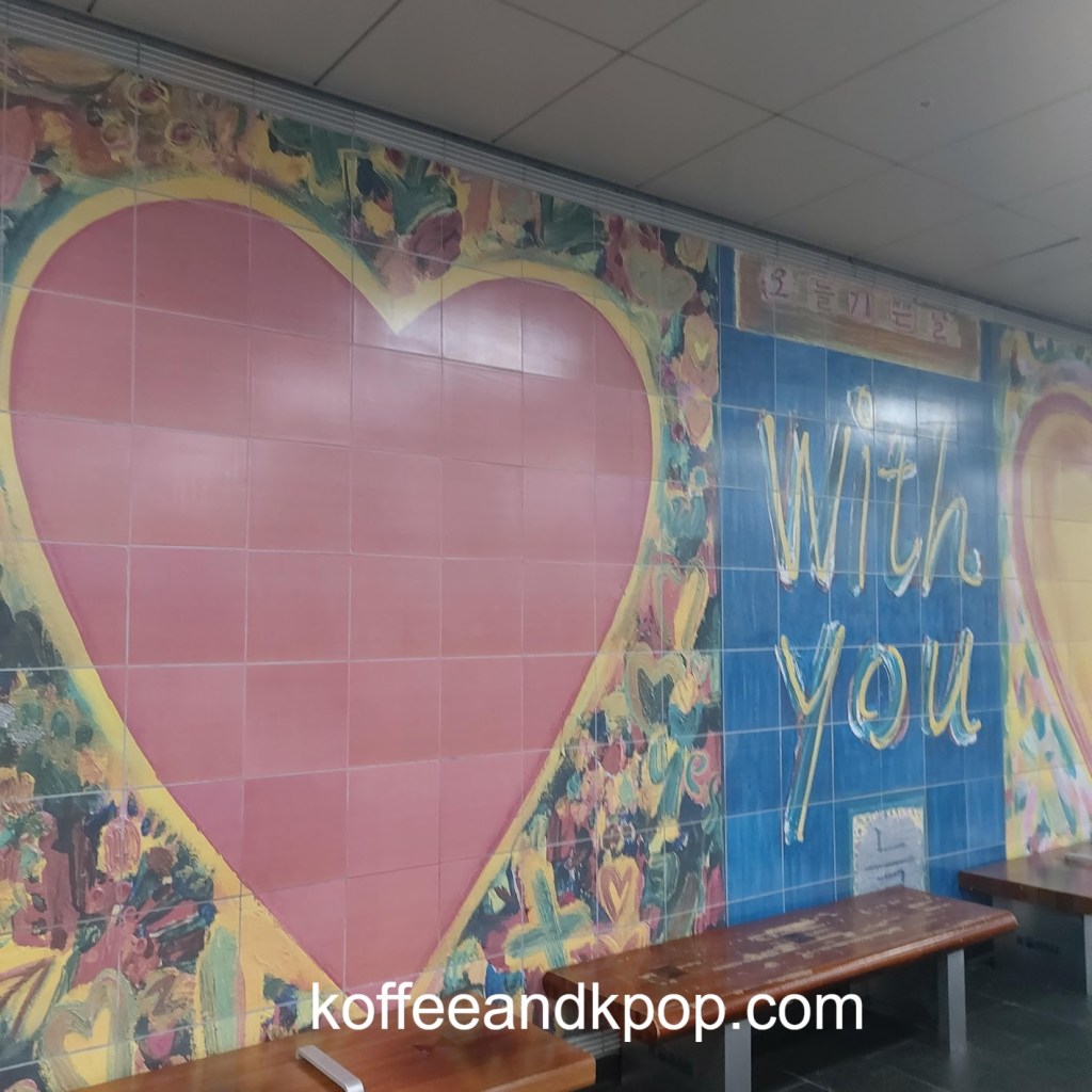 Gyeongui Line Forest Park in the fall with yellow and green leavesCraft Hans, a three story Korean craft beer brewery with balcony covered in plantsa small Buddhist temple (possibly a residence as well?) next to a garish purple building housing a 19+ adult shoplatest Kakao Friends collaboration: Tom and Jerry; Ryan is wearing a Tom suitChunsik wearing a Jerry suit and running away with a sweet potatodirty, yet colorful, trash can on the street, with empty plastic coffee cups sitting on the topsome cool hot pink cat wearing a yellow shirt holding a spraypaint can in one hand and a cell phone in the other graffiti artworkwavy designed buildingstaircase painted in faded rainbow progression; the walls are covered in graffiti tagshere are signs saying that if you want to busk here, you need to register; there are many spaces to sit and perform herethis image makes me believe this is “Red Road,” which was recently converted into pedestrian-only trafficanother view of Red Road; I tried to get a picture of the digital sign that read the temperature and air quality index but it glitched on camerahandmade craft fair along Red Roadfront of a pork belly restaurant with a lit up sign in Hangul, a staircase just inside the door, and Jinro Pinky, the large pink frog mascot of Jinro soju sitting outsideanother view along Red Roadblue vertical subway sign for entrance 7 of Hongik University Station, serving 3 linescute painted tiles in the subway station of a giant pink heart and the words “with you” in yellow handwriting on blue tiles