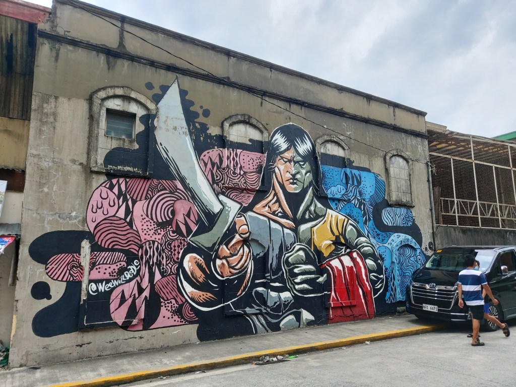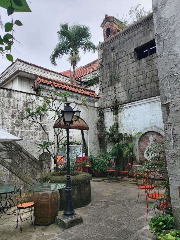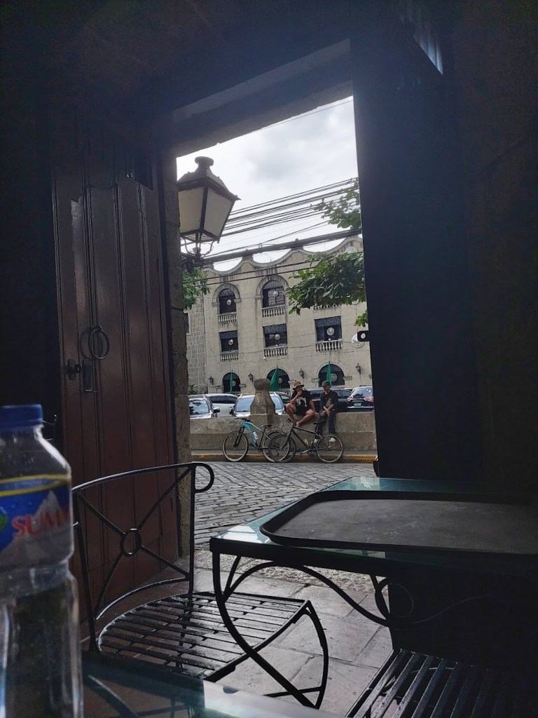 sign for the Philippine Coast Guard, featuring a dolphin swimming around an anchorposter reading “No face mask/No face shield/No entry//Help stop the spread of Covid-19”tree-lined walkwayorange and white stone buildinga man walks along a wall full of flowers with graffiti on the building in the back of the imageI’m not even sure what color green I would call this… mint?Plazuela de Santa Isabel; in the back left corner you can see the Memorare memorialbicycles sit outside Casa Manila Museumclose-up of the bicyclesMetrobank in what appears to be an old church; the words “Immaculate Conception” are still on the top of the buildingSpanish Colonial-influenced architecture seen in the restaurants herechalkboard frame advertising lemonade, milktea, iced coffee, mango, graham shake, cheesecake, cookies, in different colored fonts fancy red patrol truckintersection strung with multi-colored flags and many small stores along the roadThe Old Town Barbershop, est. 2021a non-descript white truck with the word “ice” written on it in red at the corner of an intersection with some “kamusta?” graffitia mechanic taking a break near their workbagcute anti-rabies project postersome awesome graffiti from @weewilldoodlestores along the streetsomeone gets a quick haircut on the side of the streetbeautiful cafe interiorview to the street from inside the cafeIntramuros courtyardIntramuros courtyard 2Intramuros courtyard 3a blank handprint on white stonesleeping Jesus on a bench statue outside the Manila Cathedralfacade of the Manila Cathedralwhere two buildings meeta KFC sign under a lot of telephone and electricity wirestapsilog: beef, fried egg, rice, and pickled veggies on the side… one of the best meals eversunsetwe cant seem to escape Korean and its influence… Korean ramen/fish cake/rice cake at an outdoor marketcrispy chicken neck, mini crab, and crispy shrimpsome kind of meat on a vertical rotisseriemy favorite picture taken in Manila, featuring from left to right: a bicycle cart, a rooster (for a pet), a dog (for a pet), and a motorbike