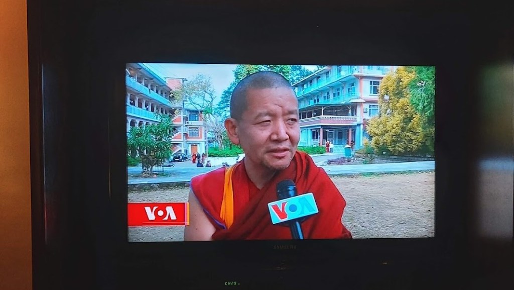 an interview with a monk on a television screen; I’m sorry I do not know who this is!