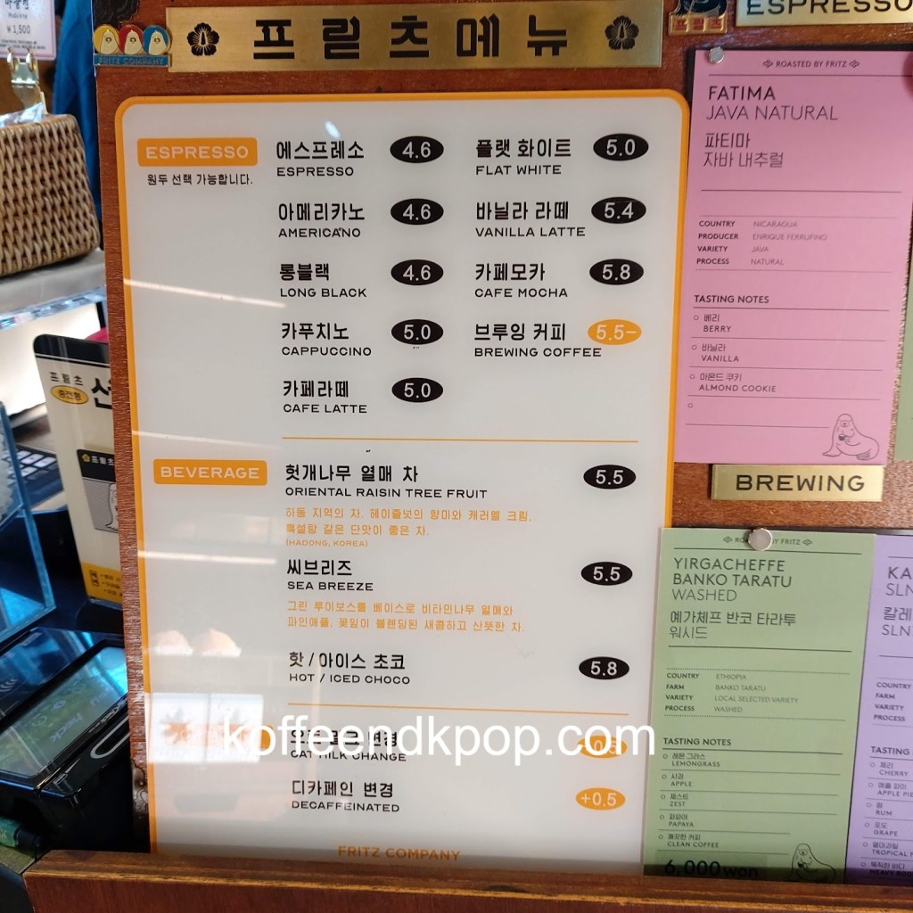 Cafe Onion in Anguk too busy? Walk 2 minutes and try your luck at Fritz, where, dare I say, the coffee is better. It’s an underrated coffee chain amongst foreigners in Korea, who all want to go to Cafe Onion in Anguk. (I see how many hits I get from that particular cafe review, and it’s a lot.)