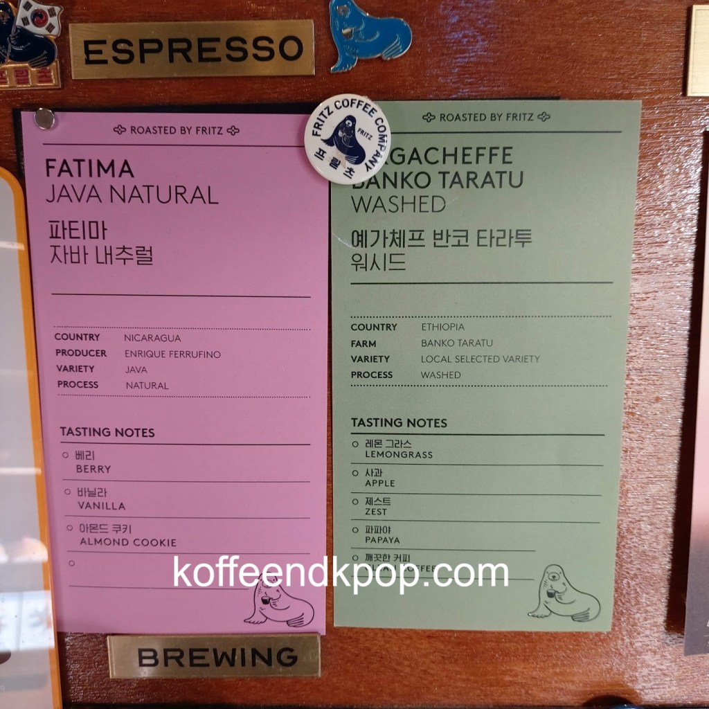 Fritz Coffee is one of the big chain coffeehouses in Korea that also roast their own coffee and offer pour-overs in addition to espresso-based drinks.