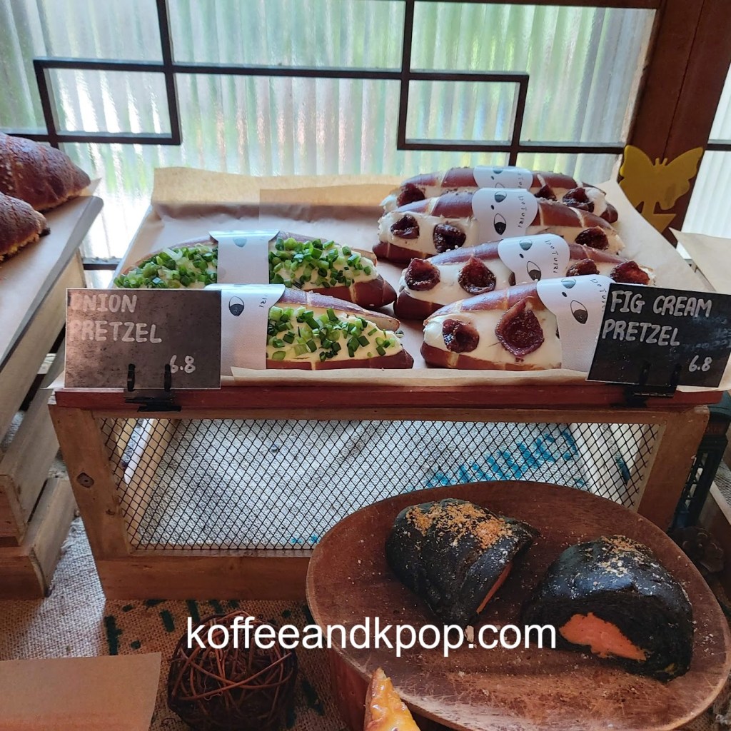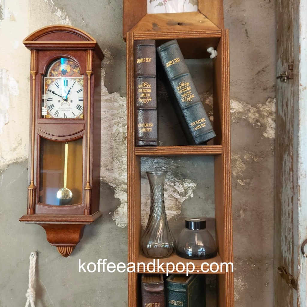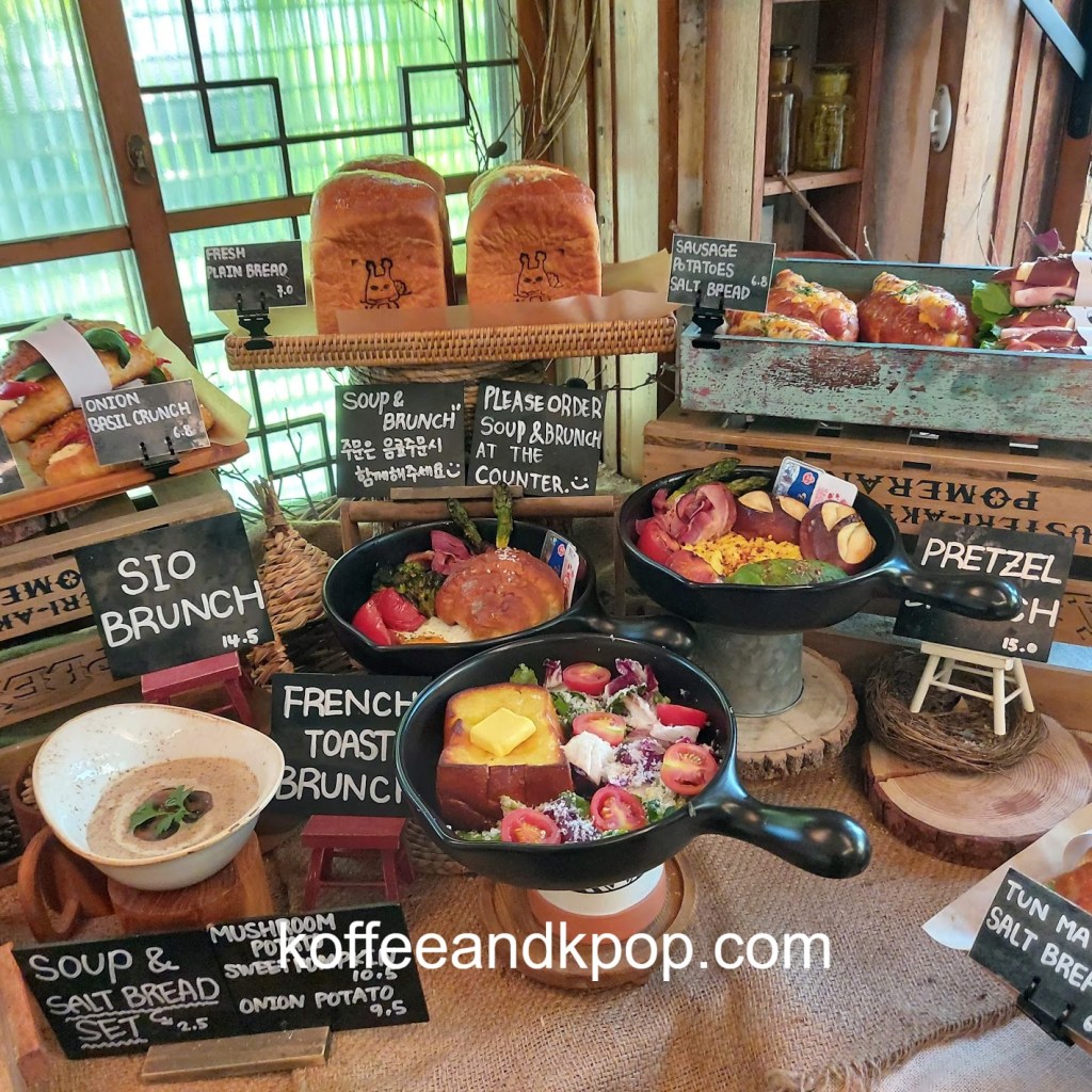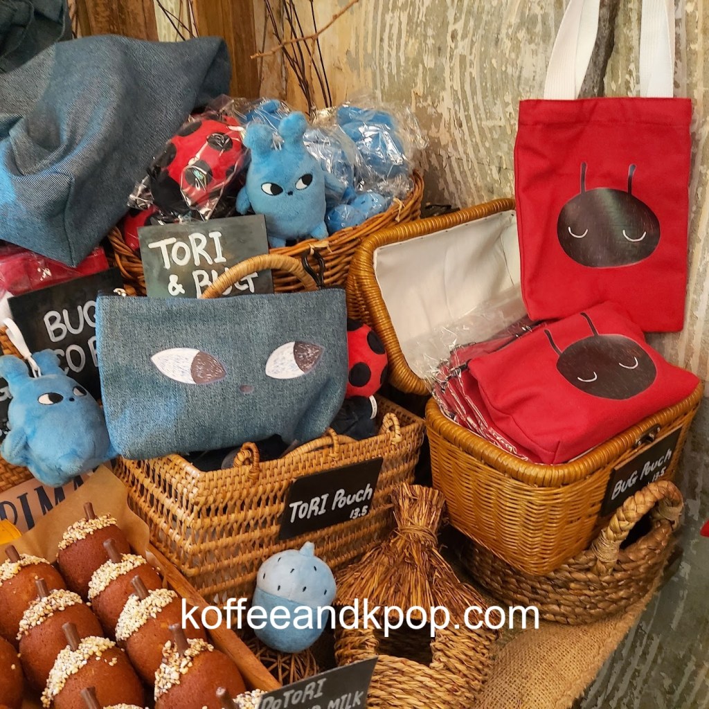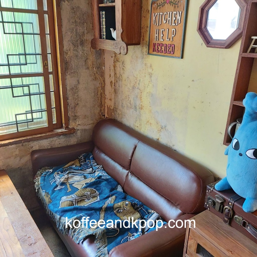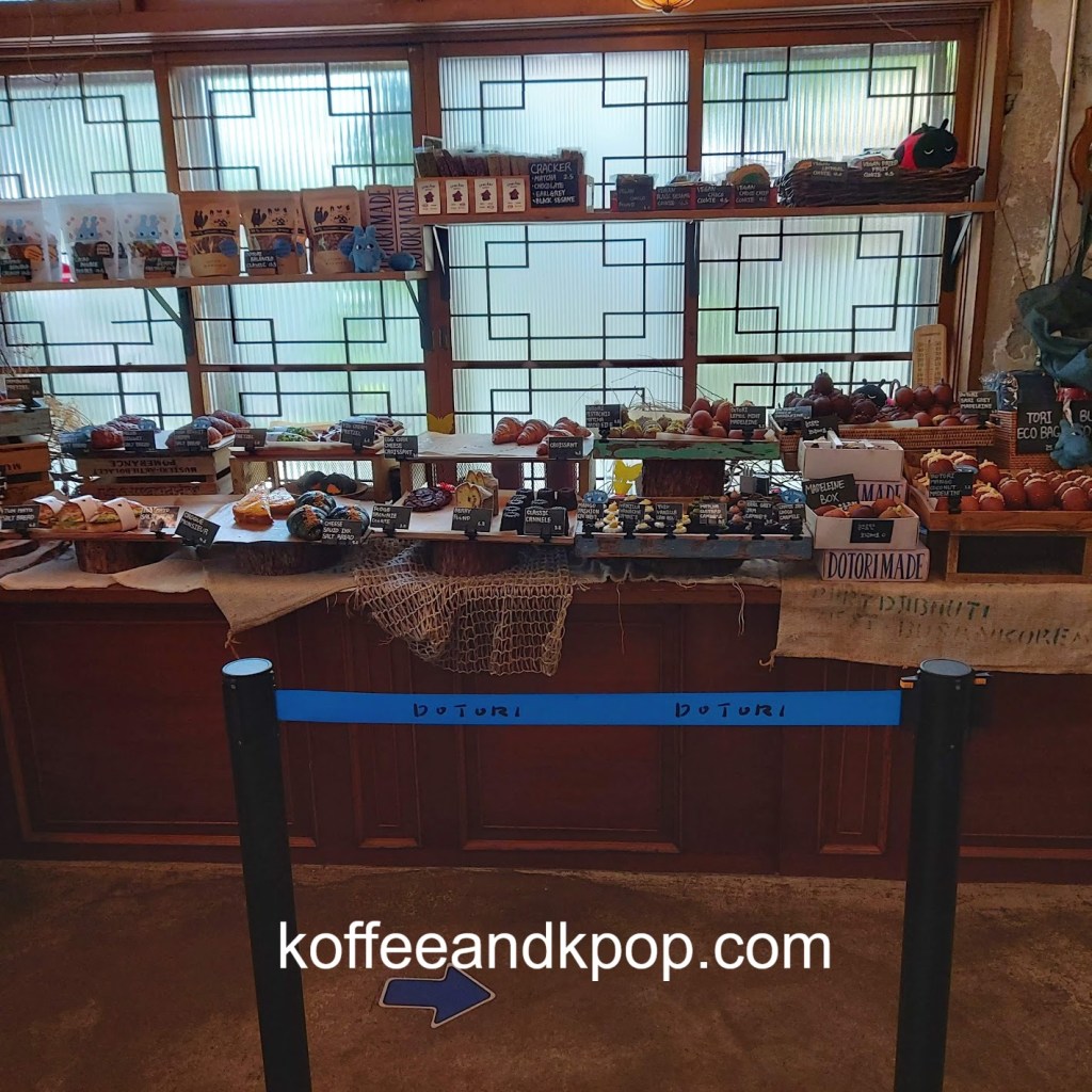 gardening supplies hanging upcaneles while I wait for my buzzer to go off for my brunchDotori character hanging outsideview of the first floor upon enteringstuffed Dotori character next to a colorful stained glass lampcomfy couch in a cornerseriously, the stuffed plushies are everywherecute bookshelfanother cute bookshelf next to a grandfather clockwelcome chalkboard with wifi passworda pair of almond-shaped eyes painted on the wall with the word “return” underneath an arrowa pair of almond-shaped painted eyes on a wall with the word “bakery room” underneath an arrowcozy second floor vibesmore cozy vibesbeautiful round tiled flooroutdoor area with, you guessed it, another stuffed plushiesunset view from the main street; Namsan Tower can be seen in the distance