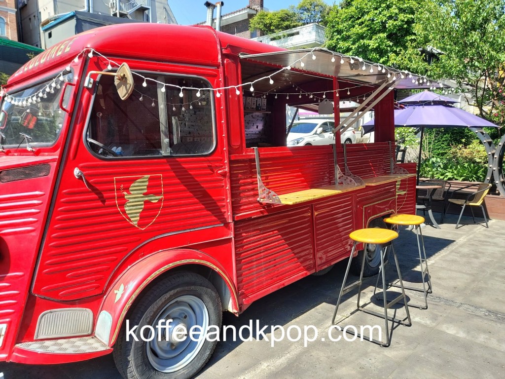 Walking into La Colombe in Seoul, you wouldn’t think that you just stepped into a cafe thousands of miles away from all the other La Colombe cafes. For starters, there’s a bright red van parked outside you can actually sit inside of while you drink your coffee. Then there’s the same kind of wood tables and chairs. The same originally-hand-painted now-printed Italian-made Deruta pottery.