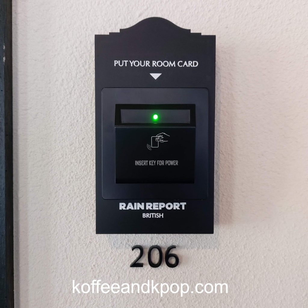 Rain Report: British is slightly different, although there is a little bit of fake rain outside the entrance, and in the center of each floor, trickling from the ceiling. The mood they’re going for is a hotel-style one, with individual “rooms” that you must collect a keycard to power the electricity for. It also features an exclusively monochrome vibe. There are three floors of rooms to choose from.