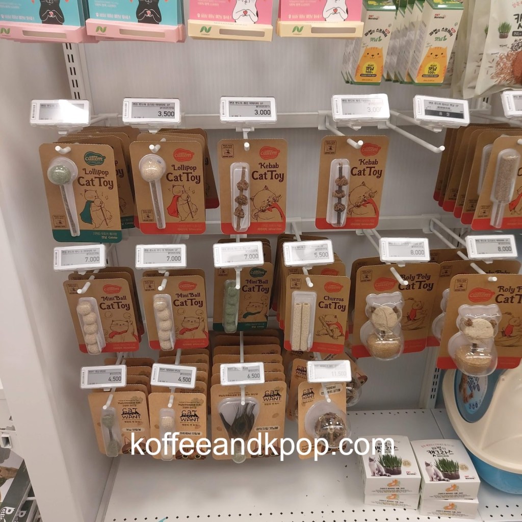 The first thing we did was stop in at Molly’s, a pet store. Cat ownership seems to be significantly less popular than dog ownership in Korea, but Molly’s stocked a bunch of cat goods, from food to litter to treats… of which I had to buy a few for Merlin, of course. I bought him a catnip lollipop and silvervine popsicle. He played with the catnip lollipop for like ten minutes before he grew bored with it, and we’ll see how he likes the silvervine popsicle at a later date.