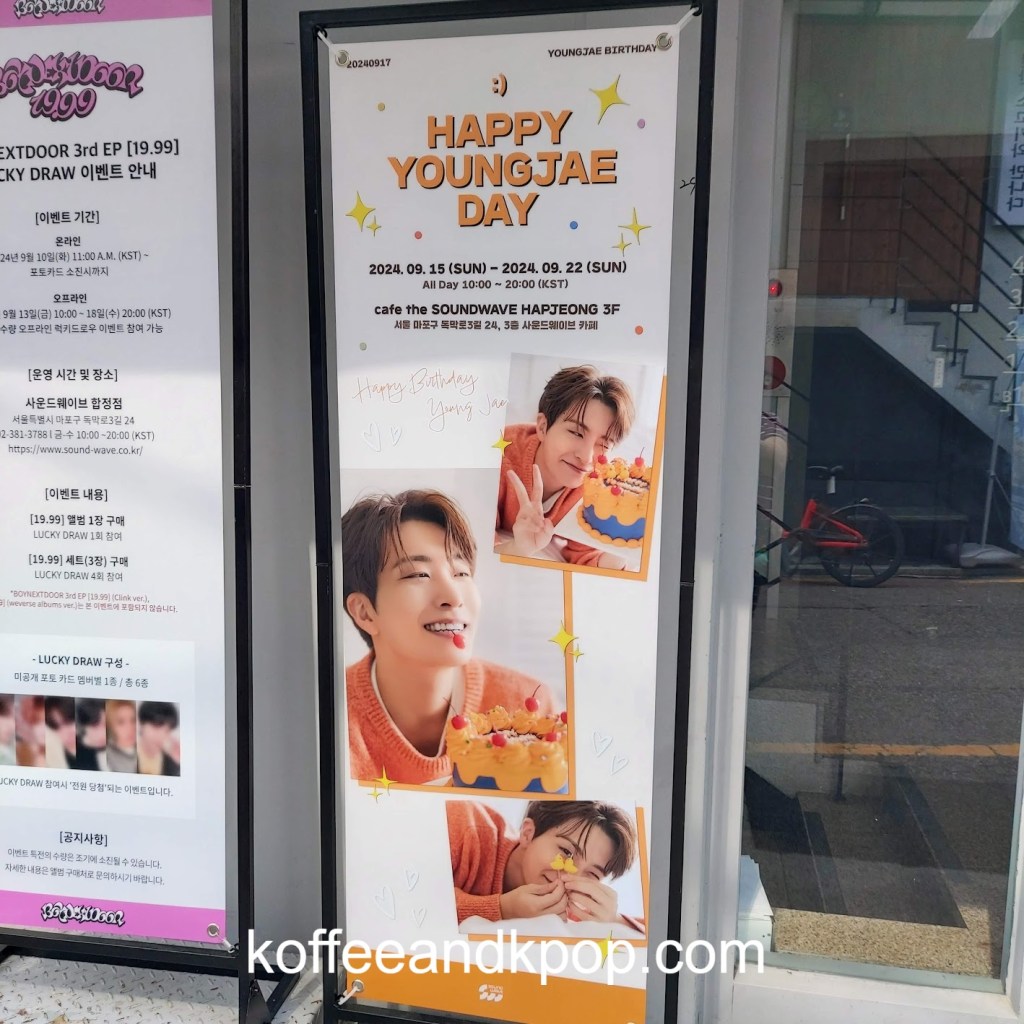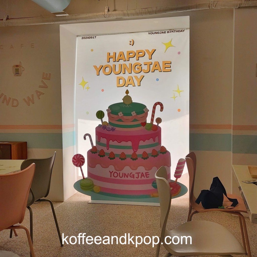 I discovered this birthday cafe on Youngjae’s Instagram stories, the first sign that this was company-sponsored. Idols don’t usually post about birthday cafes. There were no other, fan-created birthday cafes so of course I had to go.