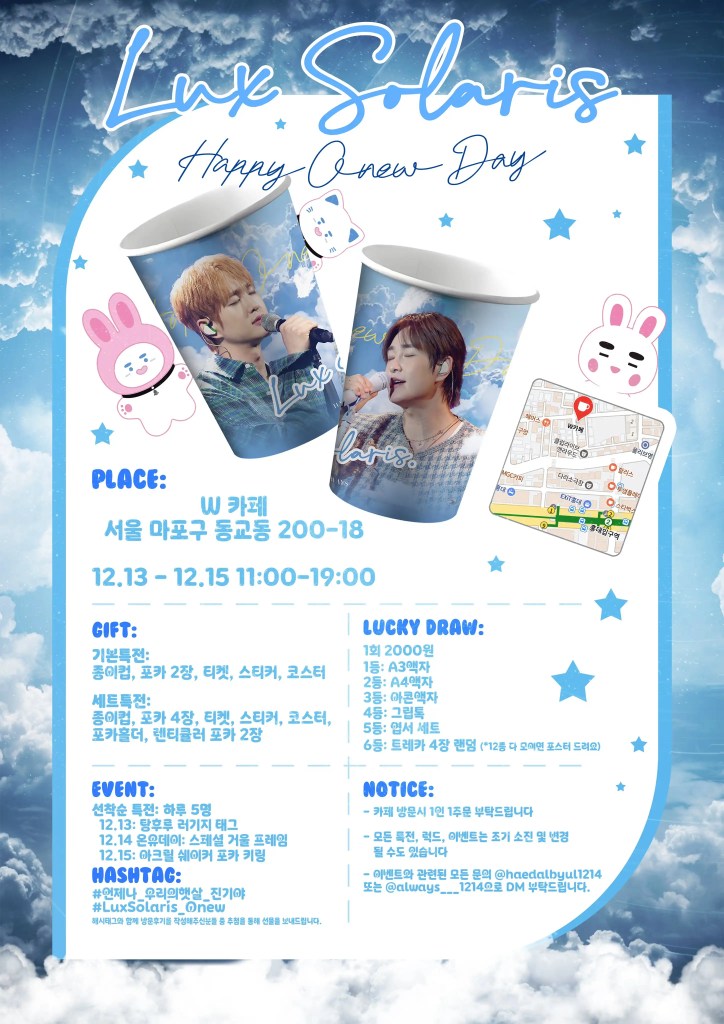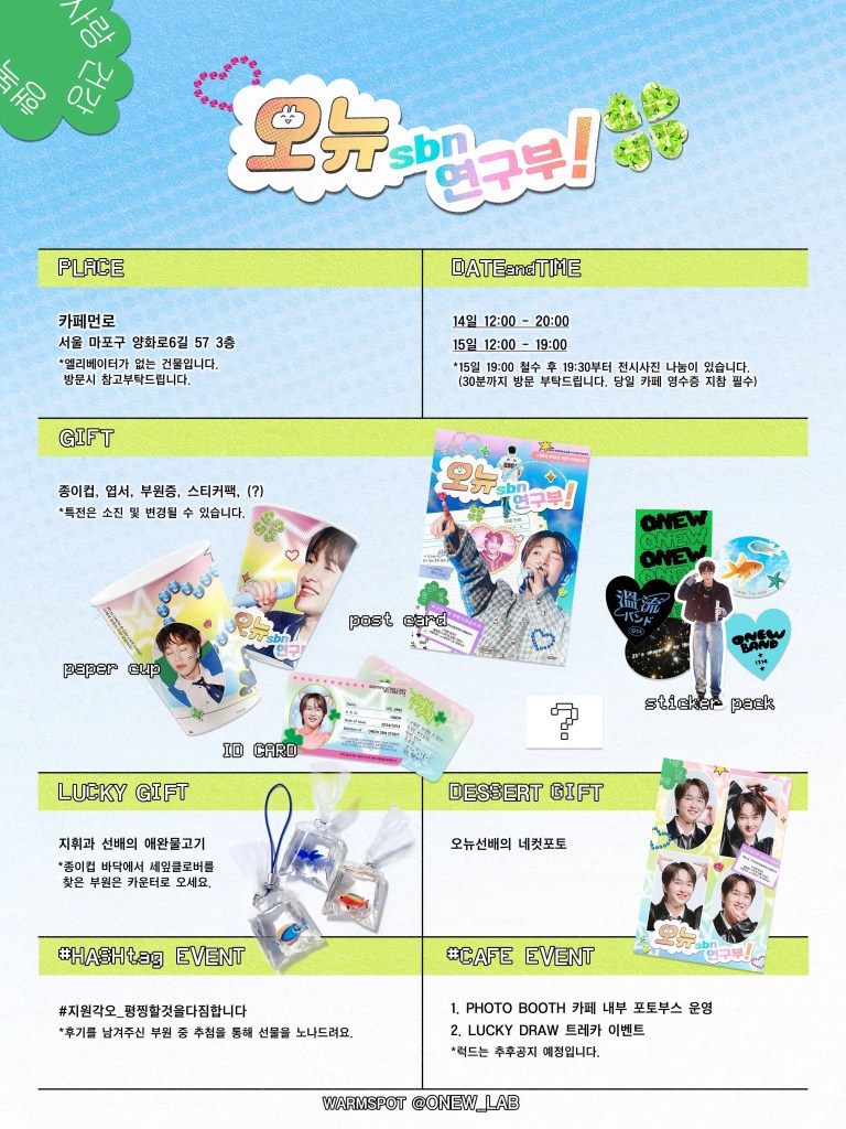 This is a list of birthday cafes for SHINee’s leader Onew, along with basic information.