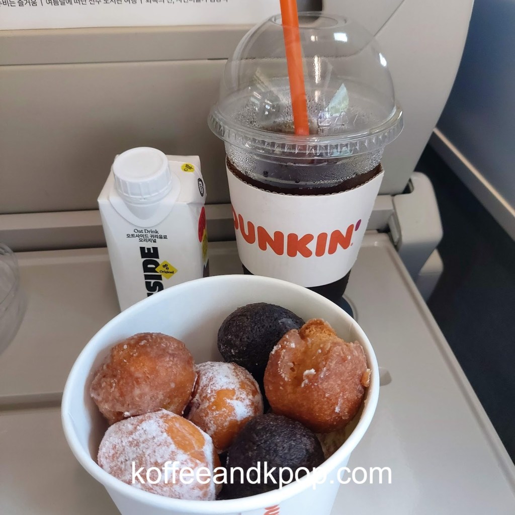 I boarded the KTX train at Seoul Station. It took about two hours to travel to Gangneung. I grabbed a cold brew, some mini donuts, and a container of oat milk for the train. I actually boarded the wrong train at first (I blame the fact that I hadn’t had any coffee yet) but eventually realized that it was a) completely empty, and b) headed to Busan. Luckily, I found the right platform and boarded next to an elderly man eating ramen noodles who proceeded to move and make his college-aged grandson sit next to me, I think because he didn’t want to sit next to a foreigner and not that he was trying to set us up or anything, because the grandson didn’t talk to me at all.