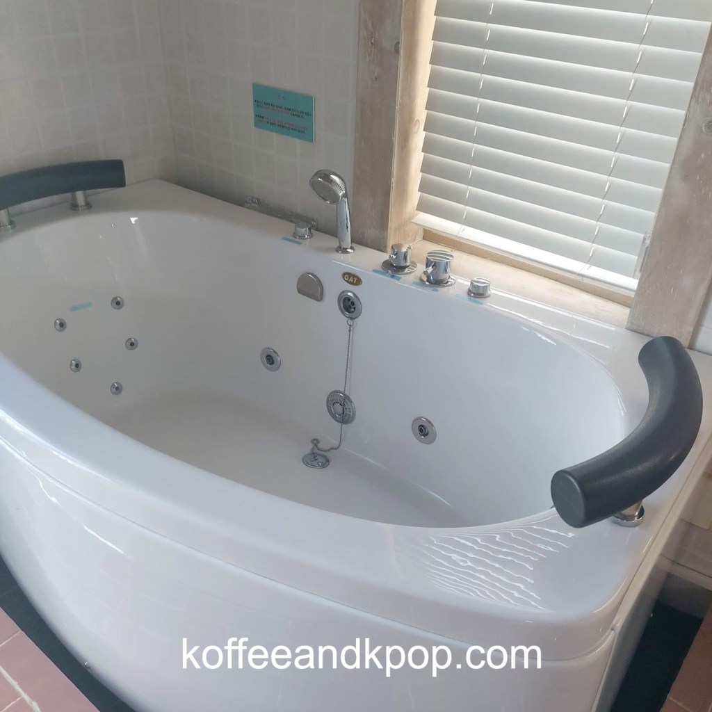 I stayed at Mint Cloud Pension because it looked really adorable in the photos and featured a spa bathtub. Baths are a luxury here in Korea and I admit I once booked a local hotel room for a night just to take a bubble bath. What’s a pension, you ask? It’s a mix between a hotel and an Air BnB. Mint Cloud was like a small hotel, and you were supposed to clean up after yourself when you left. I washed the dishes, took out the trash, left the recycling in a bag, stripped the bed of the sheets, and then popped out my head into the hallway to see if a pair of bedsheets had been left, as had been previously been for another room. There hadn’t been, and it was nearing check-out time, so I guess that is something that they take care of.