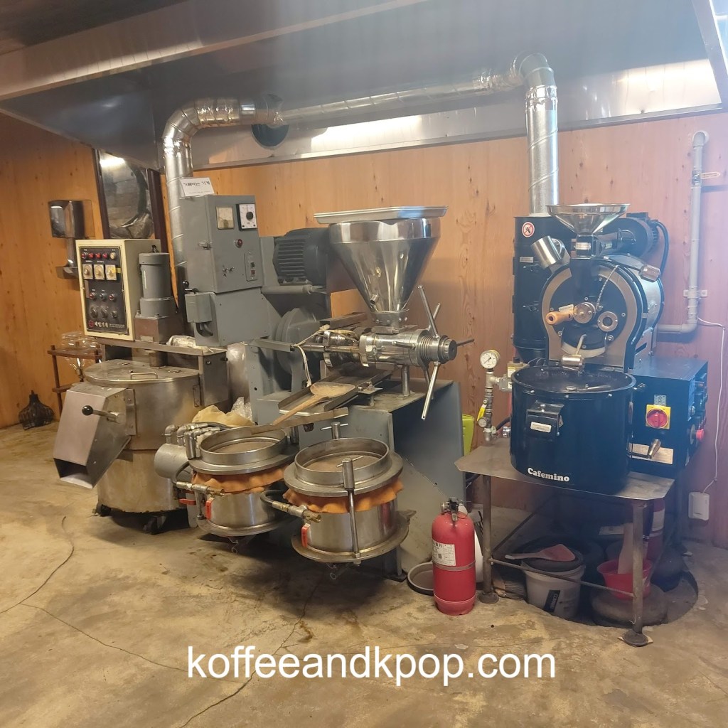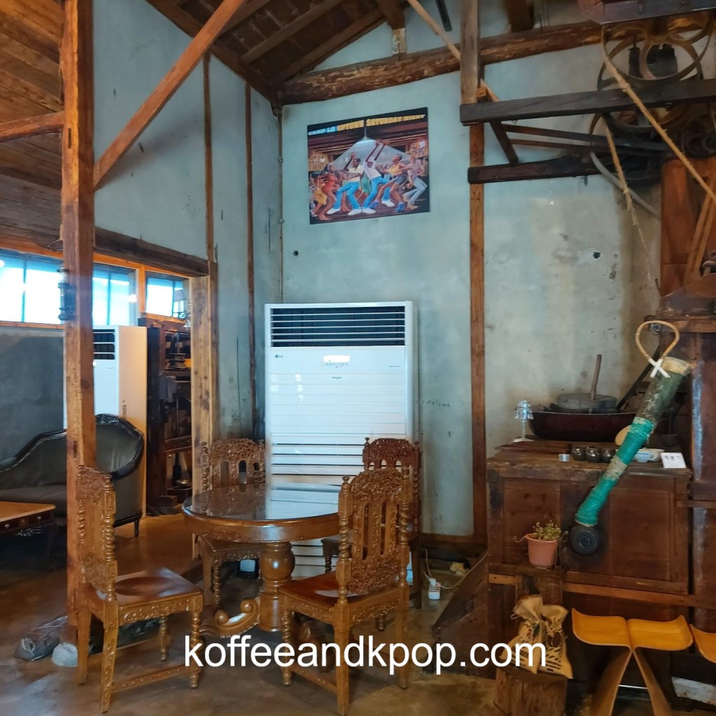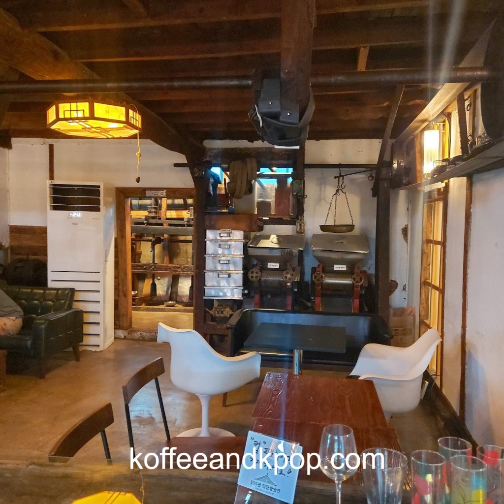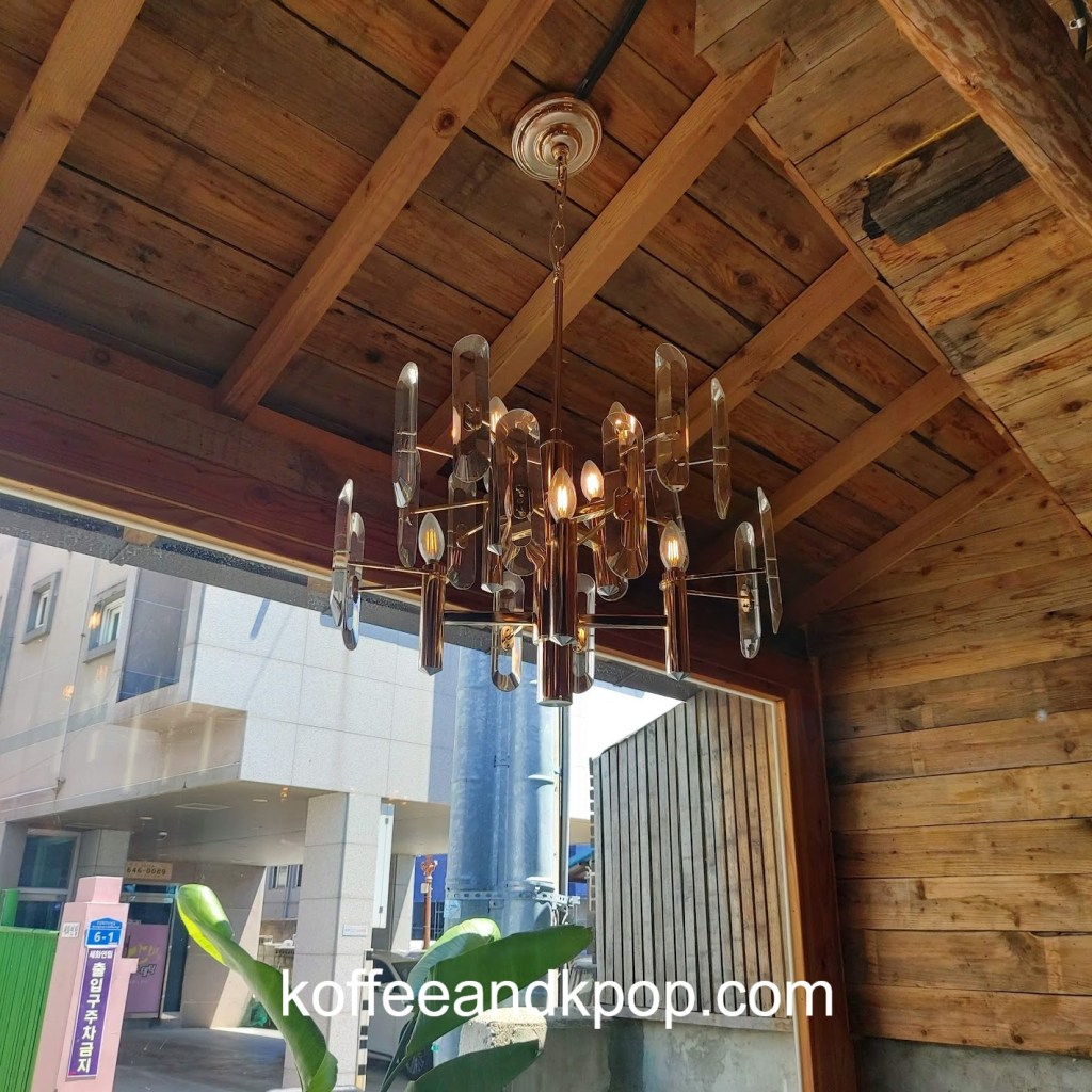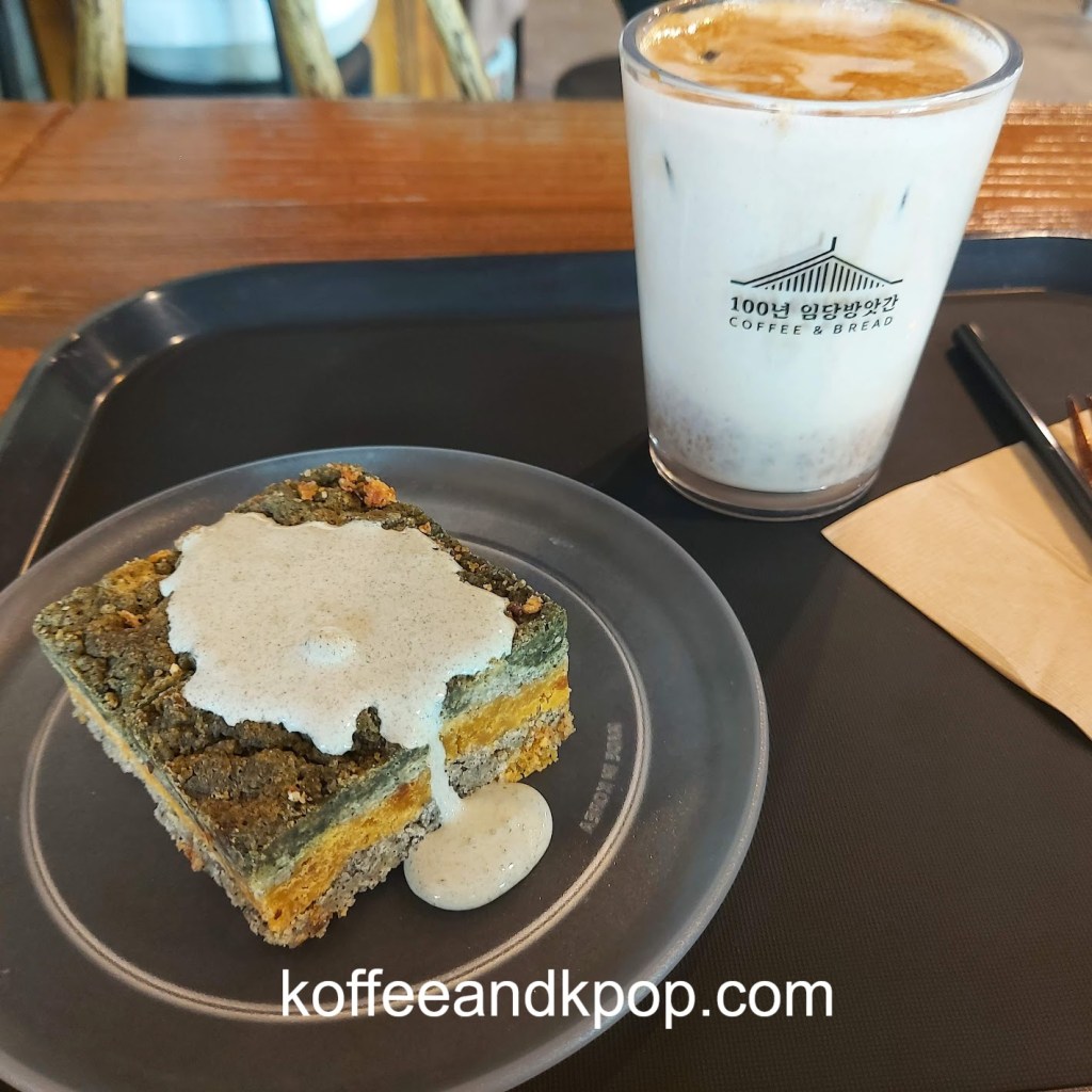 The next morning, I made my way to Wolhwa Street. First, I stopped in 100 Years Imdang Mill cafe. Honestly, looking at the green pastry I bought, I can’t remember if it was matcha or some other flavor. It was all right, and the coffee was fine; nothing that special. The decor was really beautiful, though.