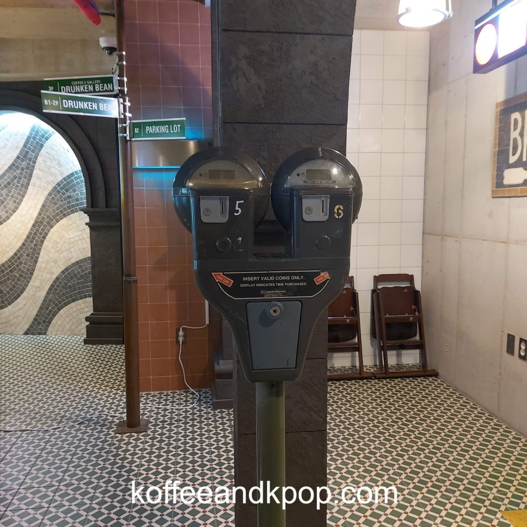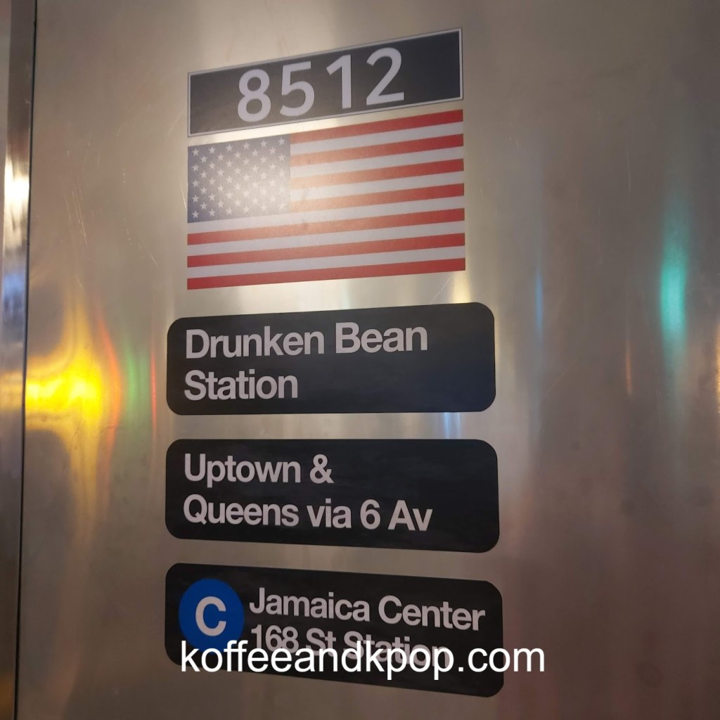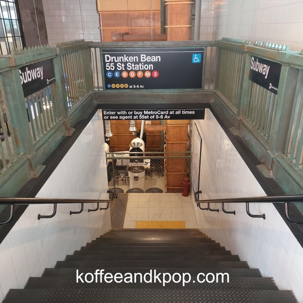neon signage on the first floorentrance to B1, where the cafe is locatedit really looks like they just ripped some stairs out of NYCan old-fashioned elevator (out of commission)Palace Theatre neon signageAmerican pay phoneturnstiles welcoming you to the cafethe other side of the turnstilesbrown leather couch beneath a No Exit neon signa neon sign reading “Annie Get Your Gun” inside the elevatorneon sign reading “The Great Gatsby”tile flooring of the elevatorwhiskey barrels in front of the white espresso bartile signage on the wall under a single lightbottles of whiskey on the countera poem, author unknown, entitled “Drunken Bean”coffee roasters behind a fencelit up “return” sign above tile that reads “55th Street”vintage-looking sign reading “Drunken Bean, est. 2024”another fake manhole cover in the tile flooringreplica of a NYC subway car along one side of the cafesubway signage next to the subway carclose up of the subway carclose-up of the side of the subway carclose-up of the “New York City transit” image on the side of the subway caryellow tenji blocks and black blocks printed with “step aside” on themseating by the subway carif you want to find the second floor, look for the Brooklyn sign; it’ll lead you to the elevatoranother view from the coffee roasters