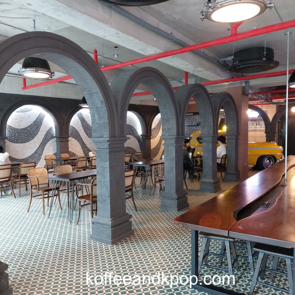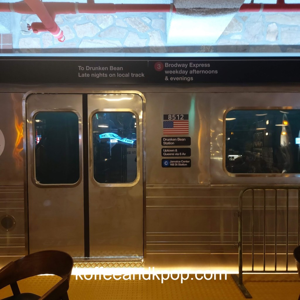 The New York City subway-inspired cafe is more than just inspired–featuring a yellow checkered taxi on the second floor, a replica subway train on B1, and an entrance marked by subway signs and turnstiles, even the New Yorker among my crafting group commented that she felt like she was transported back to New York City.