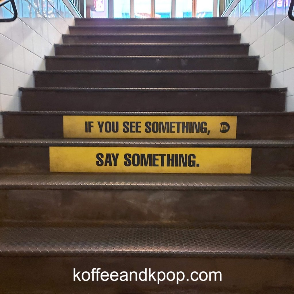 entrance to the cafe, what looks like a flight of stairs down to a NYC subway entrance