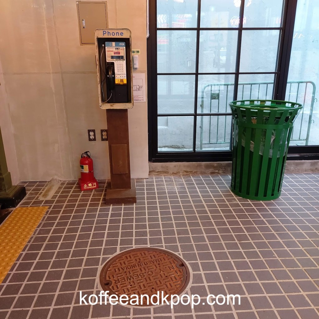 elevator to the second floorcarpet inside the elevatorDrunken Bean News with various shots of the cafeentrance to the second floor, with another set of turnstilesview of the second flooranother payphonebalcony with extra seatinganother view of the second floortables along the windowa bright mustard yellow checkered NYC taxi with “Drunken Bean” painted on the front doorclose-up of the paintingfront of the taxilit “off duty” sign on the top of the taxi“coffee x whiskey” painted on the back side of the taxitaxi next to some street signs and a parking meterclose-up of the parking meter“If you see something, say something” sign on the underside of the stairs to the first floormanhole cover in front of a payphone next to a green trash can