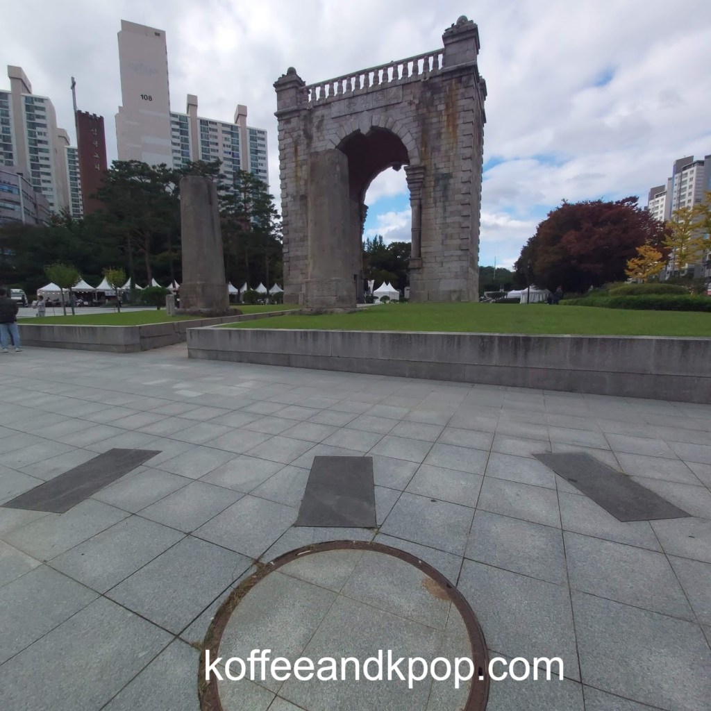 Manhole cover outside Dongnimmun λ 립문 Arch, Seoul, Korea. Constructed in 1898 as Korea gained independence from being a tributary state of China. In front are the remains of Yeongeunmun, an arch that welcomed Chinese diplomats, which was demolished when Korea broke sadae with China.