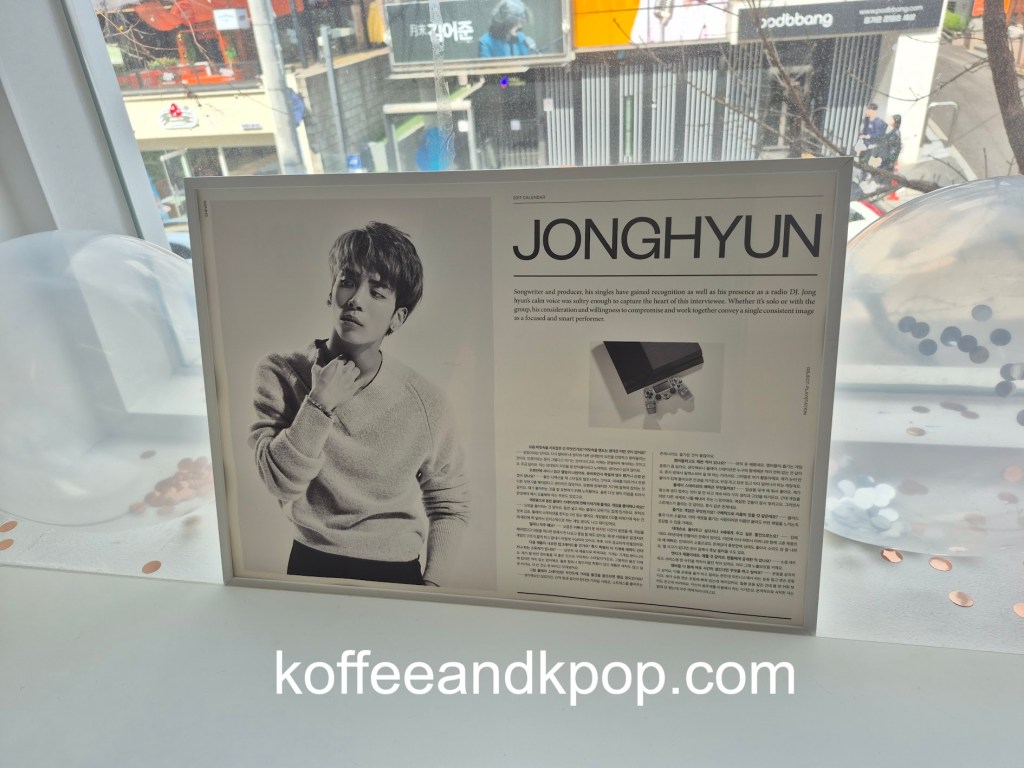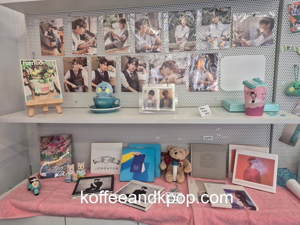 I got a minor shock upon entering the cafe, as there was a large cut-out of Jonghyun at the top of the stairs, beckoning you to come inside the cafe. I was not expecting that!