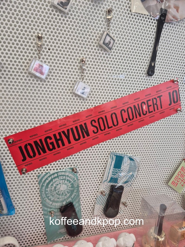 Another thing that made me realize that this was a mega fan was the jacket, displayed in a corner of the cafe. It had been worn by Jonghyun and was purchased in an auction.